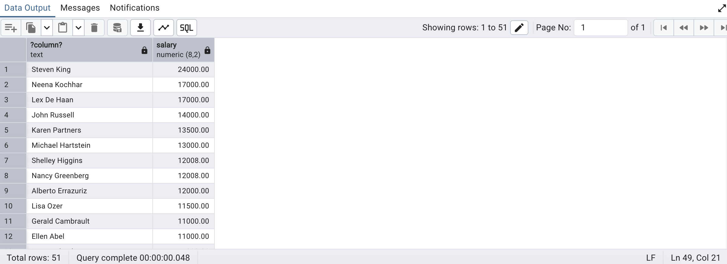 - WHERE salary BETWEEN 10000 AND 12000 - 薪资在 10000 到 12000 之间
