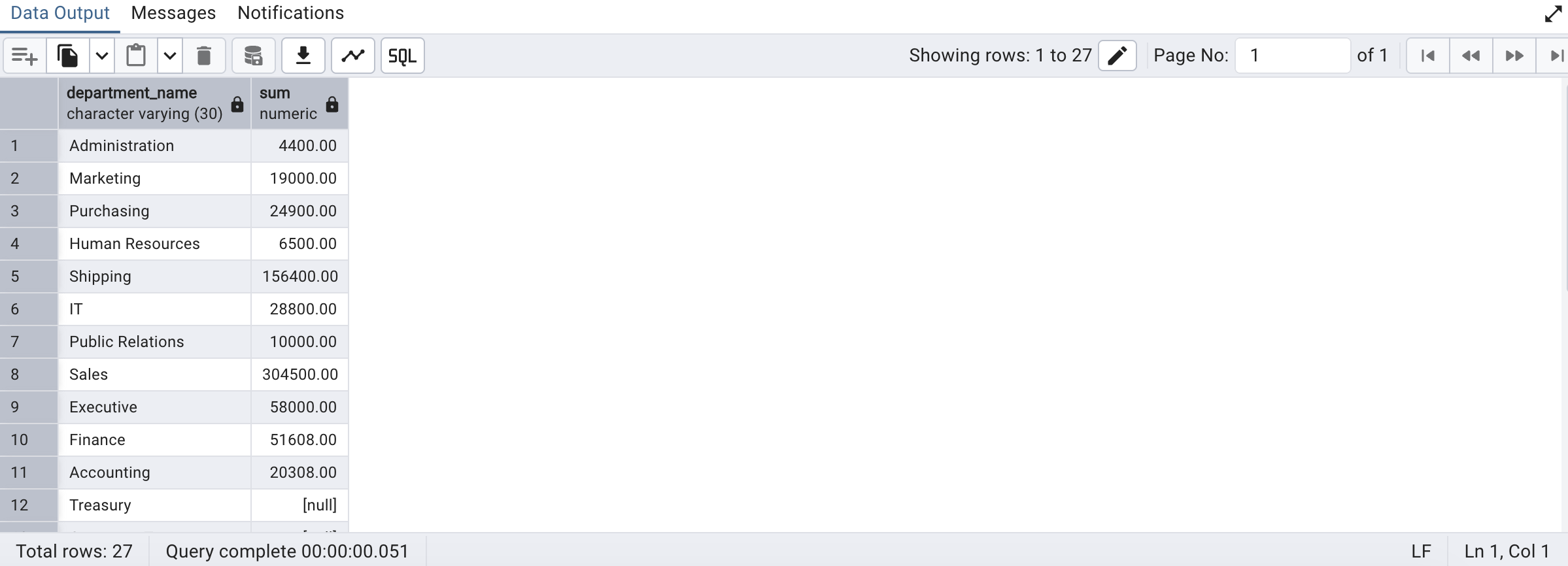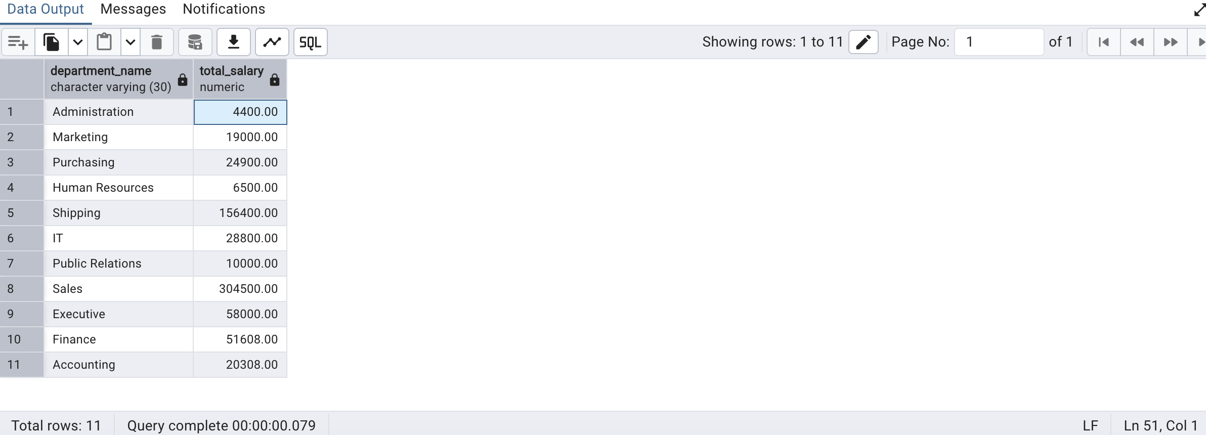 -- 先计算出每个部门的工资总和,然后和部门表进行连接
